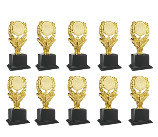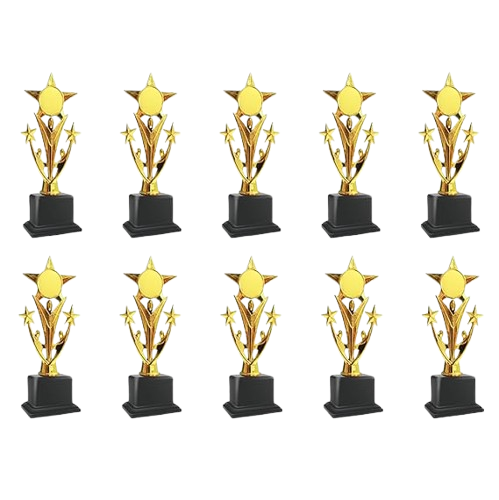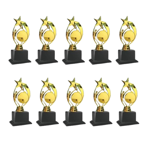 The 10 PC Trophy 04 Set is ideal for functions, events, and award ceremonies, providing a standard and classy look to honor and celebrate multiple winners or participants with pride.