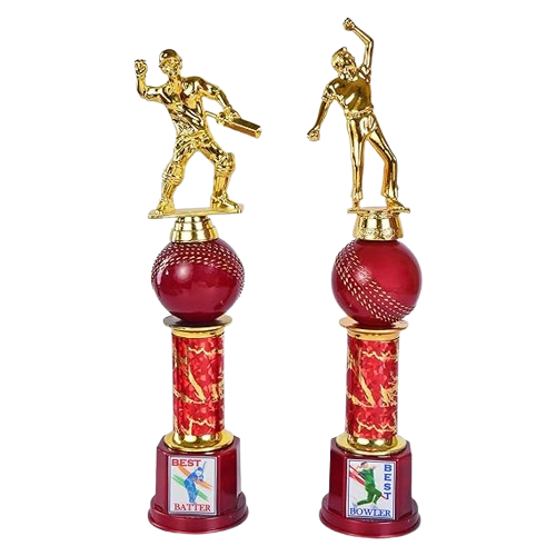 The Victory Cricket Trophies Set has Best Batter and Best Bowler awards, ideal for tournaments and team events. Mark excellence with these classy, long-lasting, and proudly made cricket awards.