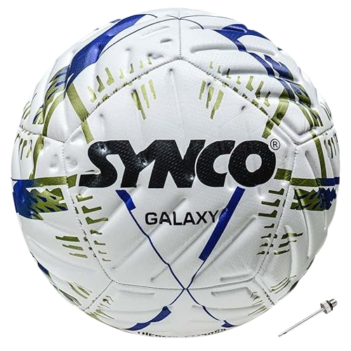 The Synco Galaxy Embossed Football features a durable design, enhanced grip, and superior air retention, making it ideal for training and matches on various surfaces, ensuring consistent performance and control.