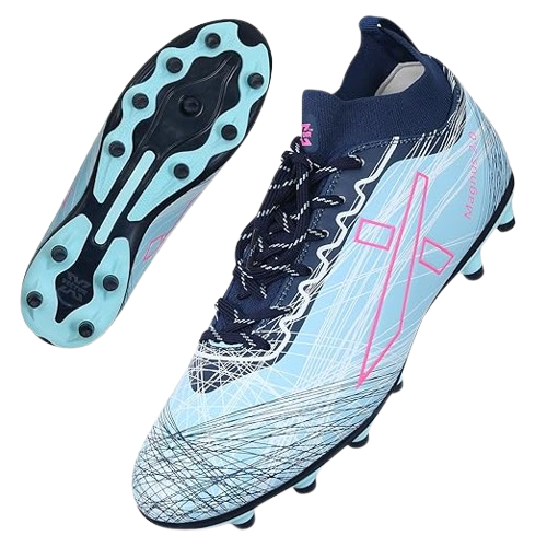 The Vector X Magnus 2.0 Football Studs feature a durable PU upper, TPU sole, and ergonomic design, providing excellent grip, stability, and comfort—ideal for competitive and training sessions on various surfaces.