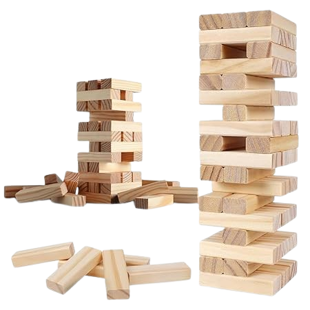 The Wembley Wooden Blocks Stacking & Balancing Game features high-quality wooden blocks, promoting focus, strategy, and fine motor skills—perfect for family fun, parties, and skill-building for kids and adults.